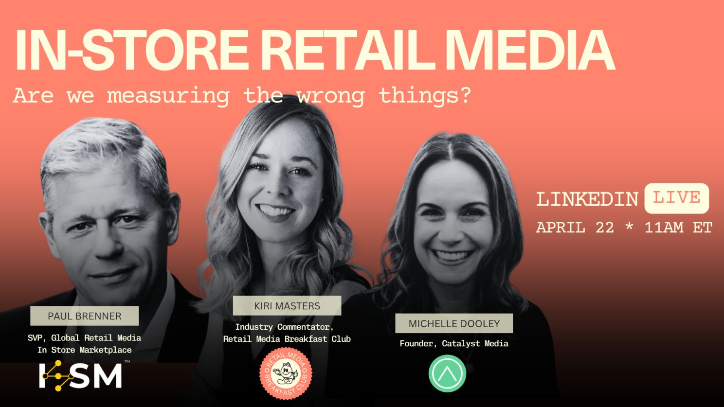 I'm hosting a LIVE event with In-Store Marketplace and Catalyst Media Consulting on April 22 about In-Store Retail Media: are we measuring the wrong things?