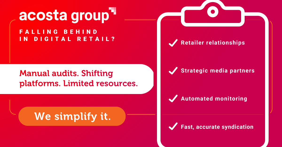 Acosta Group makes retail media execution simpler. They stay ahead of every platform update, tech shift, and media spec. So your campaigns actually show up and perform—without draining your team.