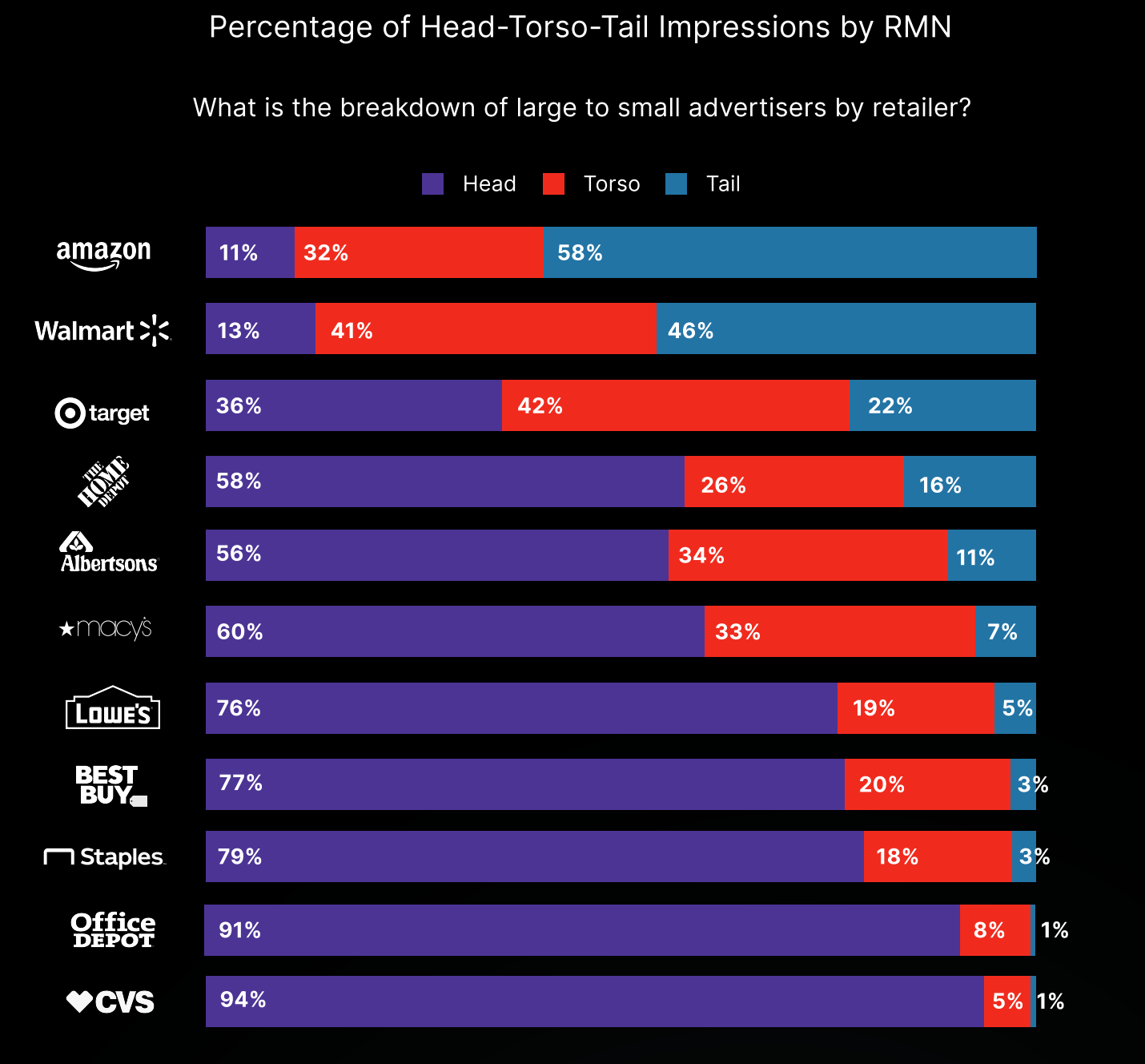 While Amazon derives 58% of its ad impressions from "long-tail" advertisers (those representing less than 0.2% of overall impressions) and Walmart achieves 46%, Best Buy gets just 3% from this diversified base. Instead, 77% of Best Buy’s ad impressions come from a handful of major brands—creating vulnerability if any of these advertisers reduce spending.