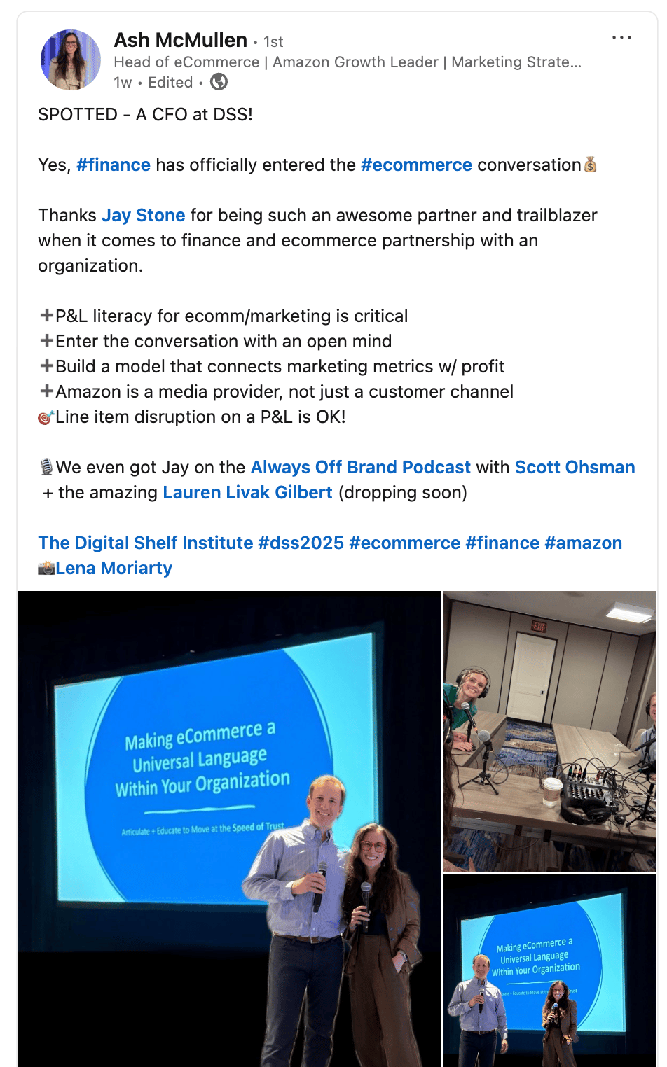 - Bring your finance team to industry events: Ash McMullen, head of ecommerce at Advantice Health, told me that she invites her finance team to e-commerce conferences. Experiencing the ecosystem firsthand helps finance teams understand why investment is needed, and be part of the evolution.