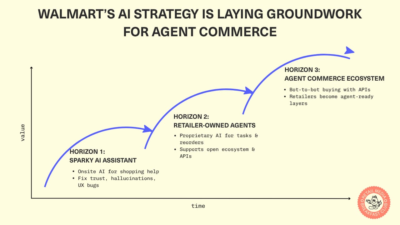 I do remain convinced, however, that shoppers will increasingly turn to their own personal AI assistants for help interacting with retailers, rather than relying on retailer AI assistants who always going to be limited by context from their own walled garden. As I wrote last week following news that Walmart is preparing for AI shopping agents, the retailer is taking a fundamentally different approach than Amazon. While Amazon builds a 'walled garden' of proprietary AI tools, Walmart is preparing for an open ecosystem where third-party agents can interact with their systems. Sparky could evolve from a shopping assistant into the foundation for agent-to-agent commerce.