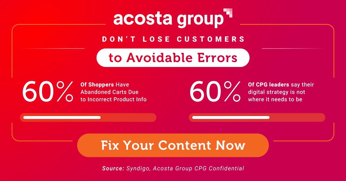 Did you know that 60% of shoppers abandon carts when product info is wrong? Before you ramp up your ad spend, fix the shelf. Acosta Group’s award-winning Connected Commerce crew is trusted by brands like Coca-Cola and Sanofi to deliver critical content updates. Acosta Group handles it all, then layers on media buying.