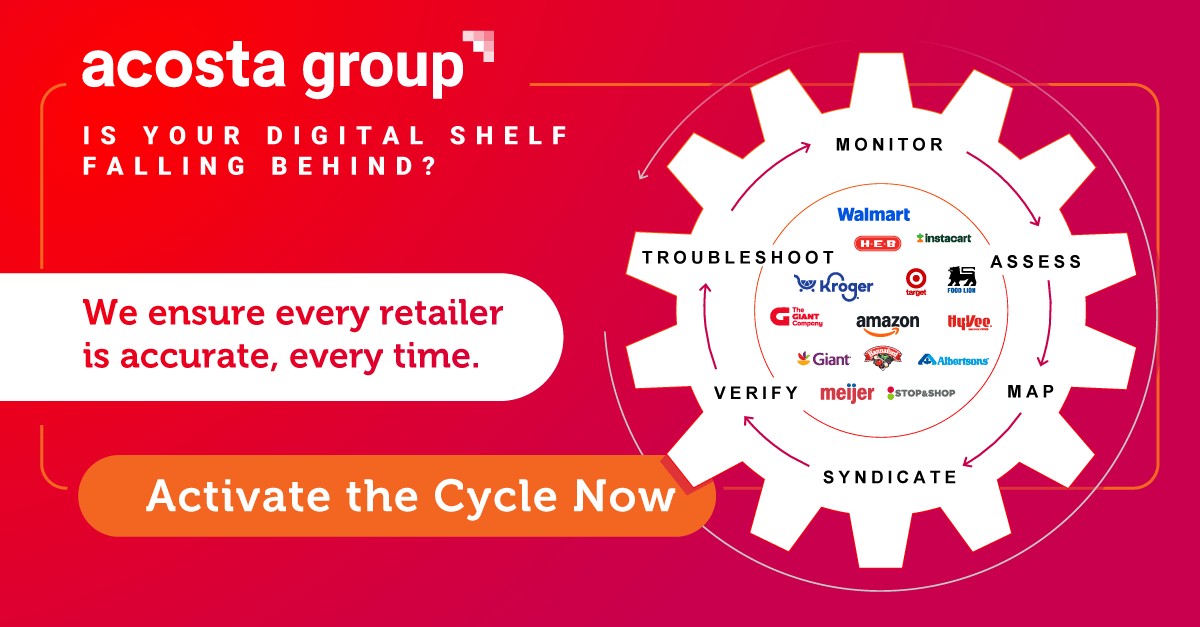 They work directly with retailers of all sizes and know where your dollars will drive the biggest sales impact. From digital shelf to retail media to data analytics Acosta Group offers end-to-end Connected Commerce——all under one roof. Learn more at Acosta.Group