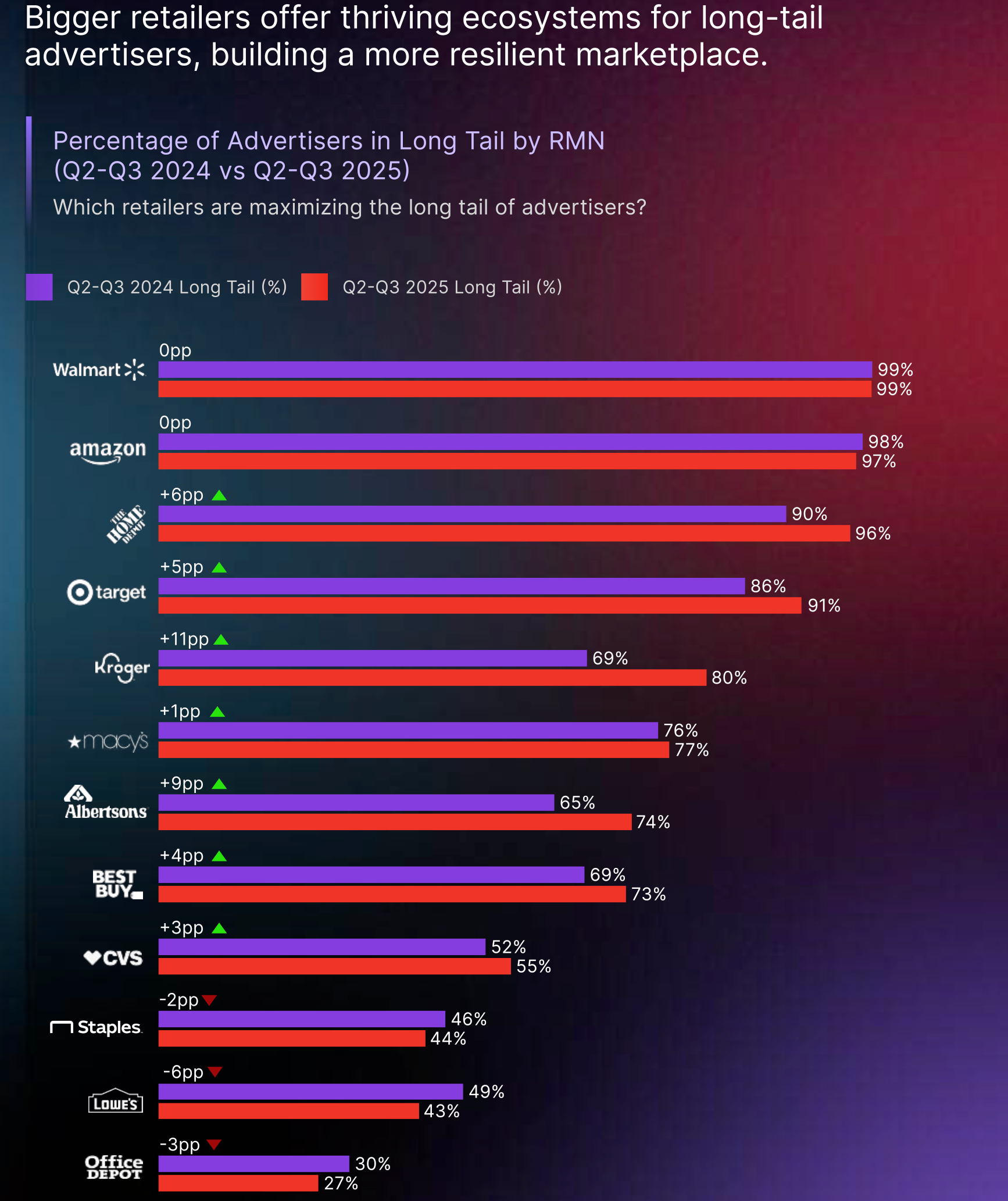 - Albertsons: Long-tail advertisers increased 9 percentage points, from 65% to 74%.